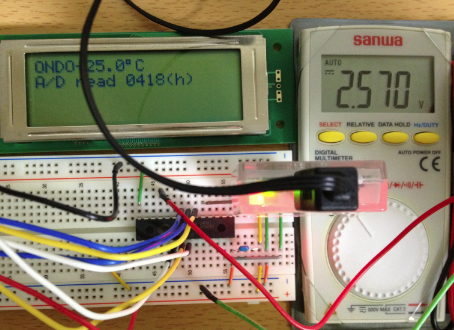 と記載されています。 リニアーに10.0mV/℃なら50℃では、0.5Vが観測されるはずです。