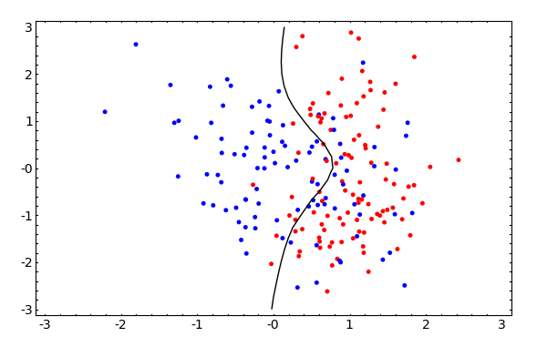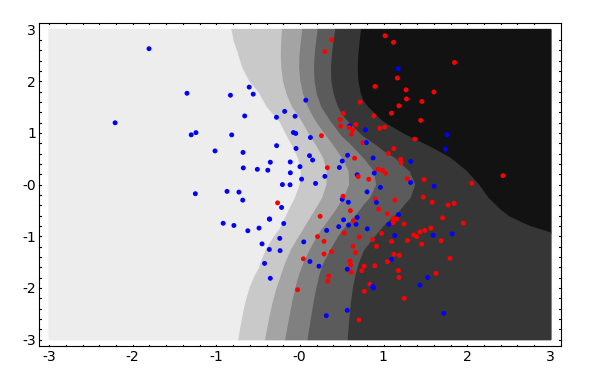 人工データの識別はとても簡単です。共役勾配法(SCG_Class)で使用した設定 の内、