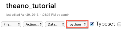 そこで、ノートブックの処理系をSageからPythonに切り替えます。上部の左から4つめのプルダウンメニューから 「python」を選択してください。