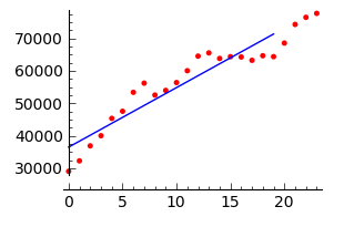 # 同様にItに対するb0, b1を求める data = zip(YtList, ItList) (Yt, b0, b1) = var('Yt b0 b1') ItModel(Yt) = b0 + b1*Yt ItFit = find_fit(data, ItModel, solution_dict=True); ItFit