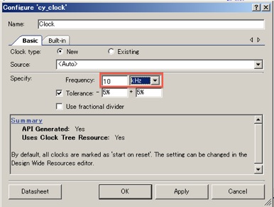 Clockは、10KHzにセットします。