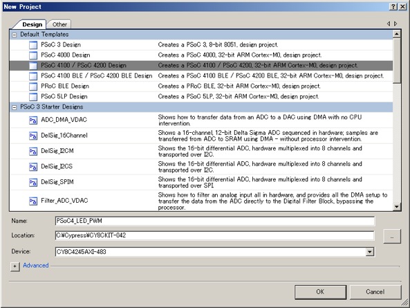 出来上がったPSoC4_LED_PWMをPSoC4 Prototypeing kitでも動くようにしてみましょう。