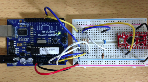 50Hz, 500Hz, 5kHzの波形は、特別なツールを用いるのではなく、もう一つのArduinoを使ったとても簡単なスケッチを使用しました。