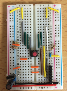 上記の資料を参考に以下の様にブレッドボードに接続しました。
