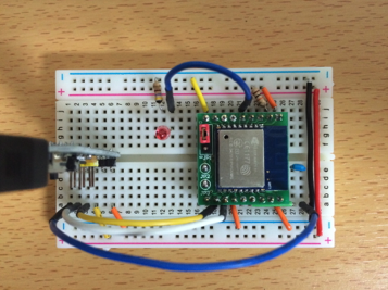 LEDと抵抗470Ωを直結してGNDに接続し、ESP-WROOM-02の5番ピン(Arduinoの13)に接続します。