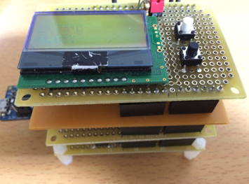 ESP8266版lbeDuinoは、使えるピンが少ないので、Arduinoピン変換シールドを使って D2をD12に、D3をD5に付け替えて実行します。