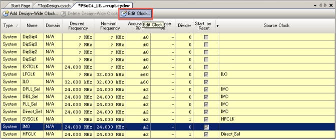 システムのクロックの設定には、Clocksタブを開きEdit Clock...をクリックして、