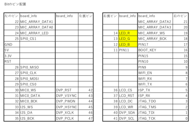 Sipeedのサイト内容では、ピン配置がよく分かりません。 https://maixpy.sipeed.com/en/hardware/bit.html