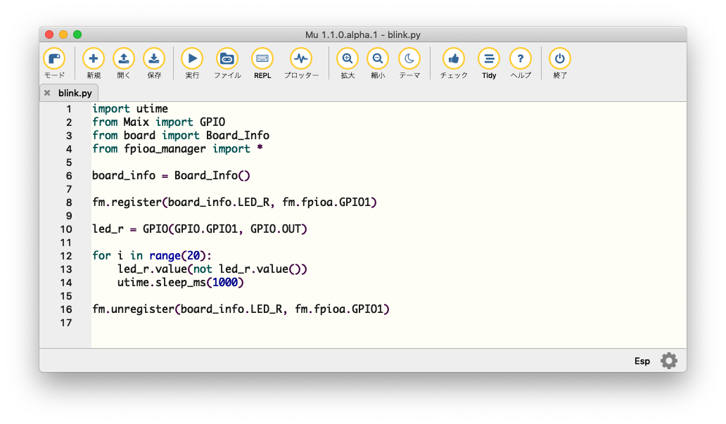 micropythonのプログラミングには、mu-editorが便利です。 MaixPyの他、exp32やmicro:bitもサポートしています。