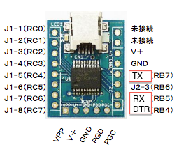 Microchip LibrariesのUSBのサンプルの「Device – CDC – Serial Emulator」で作ったUSBシリアル変換プログラム そのままでは、DTRをエミュレートしていないのでArduinoのスケッチを書き込めません。