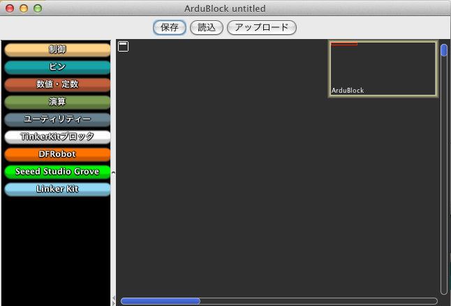 次に「アップロード」ボタンを押すと、スクリプトがArduinoに書き込まれます。 個人的には、S4AよりもArduBlockの方が簡単だと思います。