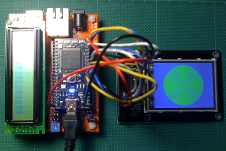 図10は、安価なタッチスクリーン付き液晶表示機器をmbedに接続 *16 したときの様子です。