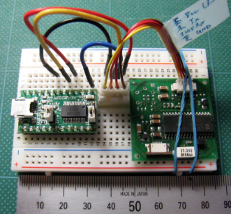 USBから接続できるTTLレベルコンバータには、秋月のAE-UM232Rを使用しました。 AE-UM232Rは、USBから外部機器に電源(5V, 3.3V)を供給し、買ってすぐにブレッドボード に接続できるすぐれもの です(図6: 右がTTLレベルコンバータ、左がICタグ リーダ・ライタ)。