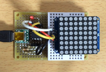 ATtiny85と8x8マトリックスLEDは、以下の様に接続します。