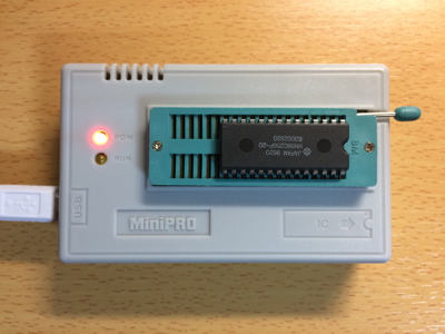 EEPROMの書き込みにはアマゾンで安価に販売していたUSB Mini Proを使用しました。 付属TL866Aの付属のアプリ(minipro.exe)ではどうも書き込みに失敗します。