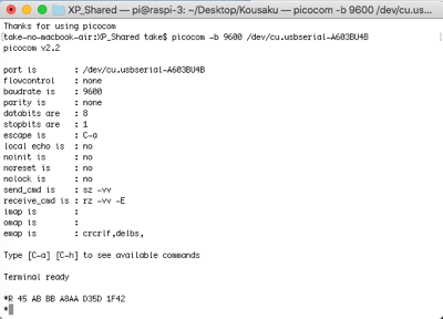 $ picocom -b 9600 /dev/cu.usbserial-A603BU4B