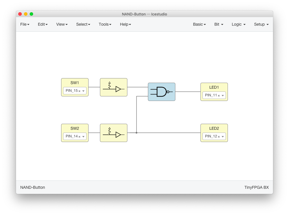 FPGA/01-MAX3000Aを使ってみる で試したNAND回路をTinyFPGA BXで作ってみます。