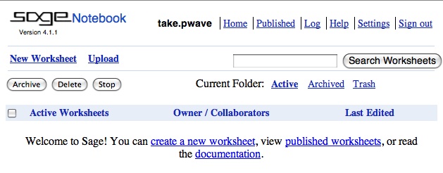 SageのホームページのTry Sage Onlineをクリックして、Sign up for a new Sage Notebook accountでアカウントを作成してください。