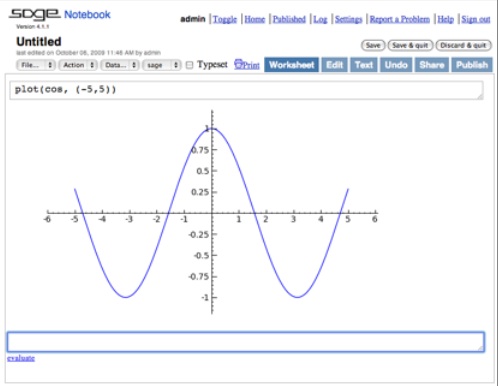 Sageは、オープンソースの数式処理システムで、MathmaticaのようなNotebookを使って数式の入力と結果をグラフに出力することができます。