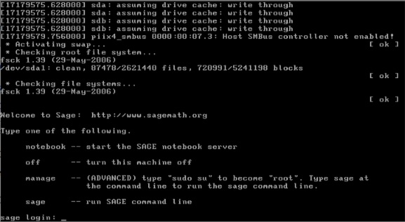 VM Playerの画面で、Ctrl-Cを入力し、sage login: 画面になったら、offを入力すると仮想マシンがシャットダウンします。