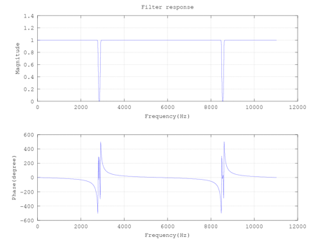 エコーを除去するために、以下の様なBRFフィルタを作成します。