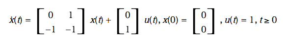 例として以下のような2次の微分方程式をSageで表してみます。 $$ \ddot z + \dot z + z = u(t) $$ ここで外部からの変位u(t)を、\(u(t) = 1, t \ge 0\)のステップ関数とすると上記の微分方程式は 以下のように定義されます。
