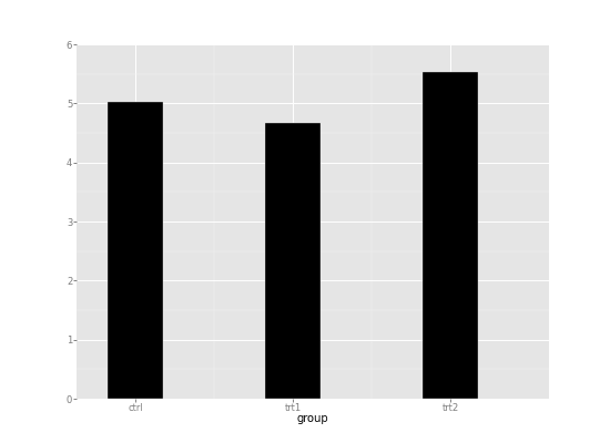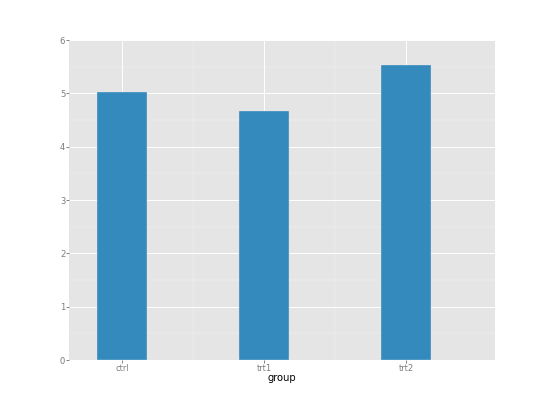 # R版と指定方法が異なるので graph = preGraph("fig3.1.png") r('p <- ggplot(pg_mean, aes(x=group, y=weight)) + geom_bar(stat="identity")') r('plot(p)') postGraph(graph)