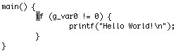 これに対して、スペース、タブ、改行などの空白類で区切られた単位をWord(以下大ワード単位と記す)と して移動するコマンドがWとBです。図10のg_var0のgの位置でWを続けて入力することで、 カーソルがifの先頭のi、(、!と空白類単位で移動します(図12-a, 12-b, 12-c参照)。 逆にBを入力すると(、i、gと最初の位置に戻ります。