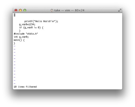 ファイル全体をコマンドに渡して、その結果と置き替えるには、:%! コマンドの形式で行います。