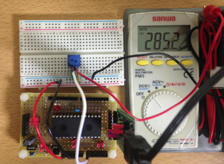 AnalogInは、可変抵抗(potensiometer)を使って電圧を変えて動作を確認しました。