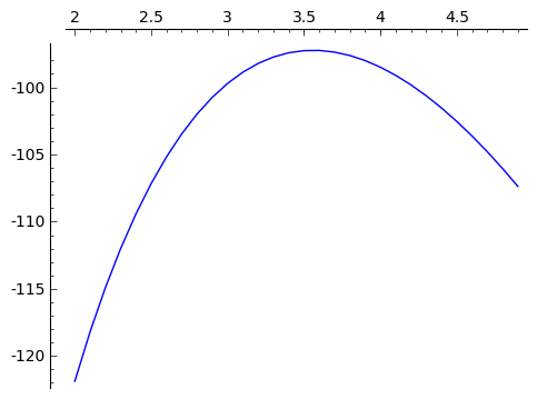 # グラフから最大となる対数尤度を求める(少し時間が掛かる) lams = np.arange(2.0, 5.0, 0.1) Ls = [logL(x) for x in lams]