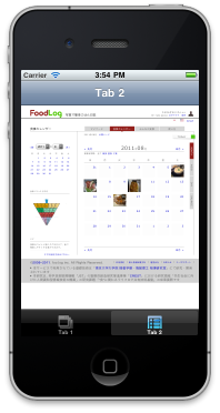 Tab 2のWebViewのFoodLogサイト画面に遷移してみます。 Webページの表示に時間がかかるので、delay関数ですこし待ちます。