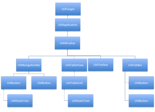 すべてのUI部品が、UIAElementクラスのサブクラスとなっているので、部品が含む要素は、buttons()等のように部品要素単位で取得することができます。