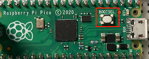 MacOSの場合、スケッチをアップロードするにはPicoのBOOTSELボタンを押しながらUSBのケーブルを挿入します。USBメモリを差した時と同様にPicoのドライブが現れます。