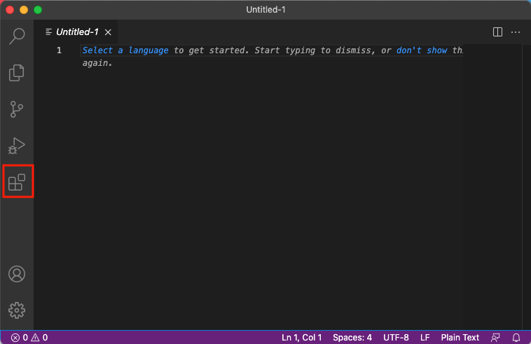 VScodeを起動すると、画面の左側にさまざまなアイコンが並んでいます。PlatformIOは、VScodeのプラグインとして提供されています。プラグインをインストールするには、Extentionsボタンをクリックしてください。