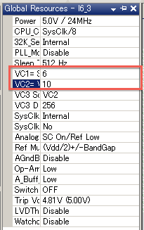 グローバルセッティングは、VC2が400kHzとなるようにVC1=6, VC2=10にセットします。