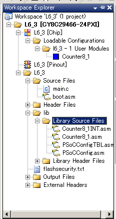void main(void) { // M8C_EnableGInt ; // Uncomment this line to enable Global Interrupts // Insert your main routine code here. Counter8_1_Start(); Counter8_1_EnableInt(); // Counter8_1を割り込み許可する M8C_EnableGInt; // PSoCの割り込みを許可するマクロ while(1) continue; }