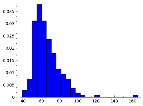 # Sage6.7で導入されたhistogramを使用、binsのデフォルトは10