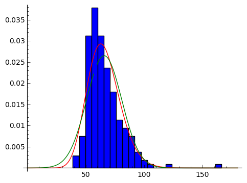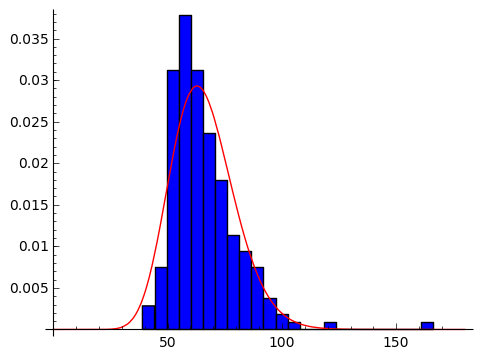fit_alpha, fit_loc, fit_beta = stats.gamma.fit(np.array(davis.weight), floc=0)