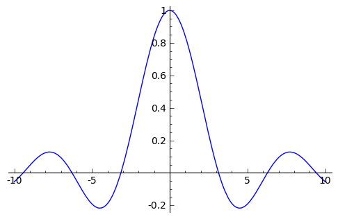 次のような特殊な関数fを考えます。 $$ f(x) = \frac{sin(x)}{x} $$
