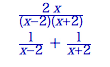 f3 = 1/(x+2)+1/(x-2); view(f3)