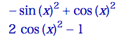 f4 = cos(x)^2-sin(x)^2; view(f4)       # cos(x)^2 + sin(x)^2 = 1を使って