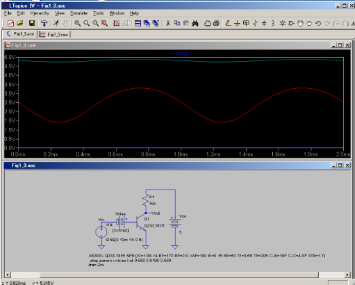 Vbiasがこれだけずれただけで、Sin波が上部でつぶれたり、下部で直線のようになってしまします。