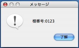 Bookダイアログには、ICタグID, ISBN番号、書籍情報、棚番号が表示されます(図5)。