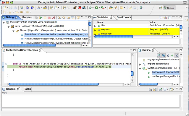 では、実際にmvc-conventionのWebアプリケーションをデバッグしてみましょう。