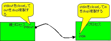 $ ex1 1>1.out 2>2.out $ more *.out << 1.outの内容 >> this is a parent process this is a child process << 2.outの内容 >> pid(parent)=6570 pid(child)=0