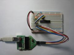 のようにブレッドボードで回路を組んで、ライターでSignatureを読み込むと、