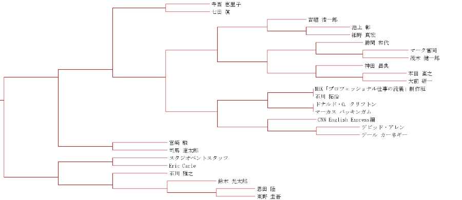 得られた著者とユーザの欲しいものリストのデータに対して、tanimoto係数を距離として クラスタ分析をします。