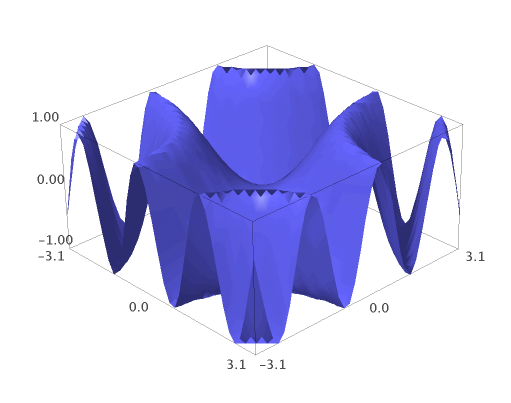 x, y = var('x y') plot3d(sin(x*y),(x,-pi,pi),(y,-pi,pi), mesh=True)