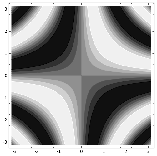 var('x y') contour_plot(sin(x*y), [x, -pi, pi], [y, -pi, pi], aspect_ratio=1)